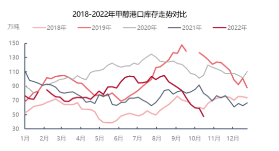 与此同时,海外装置检修、进口减少,也削减了港口甲醇市场外部供给的补充。“7-10月,随着进口的减少,再加上阶段性倒流内地配合下的需求好转,造成了沿海库存的大幅去库,刺激了价格的低位反弹。”隆众资讯表示。