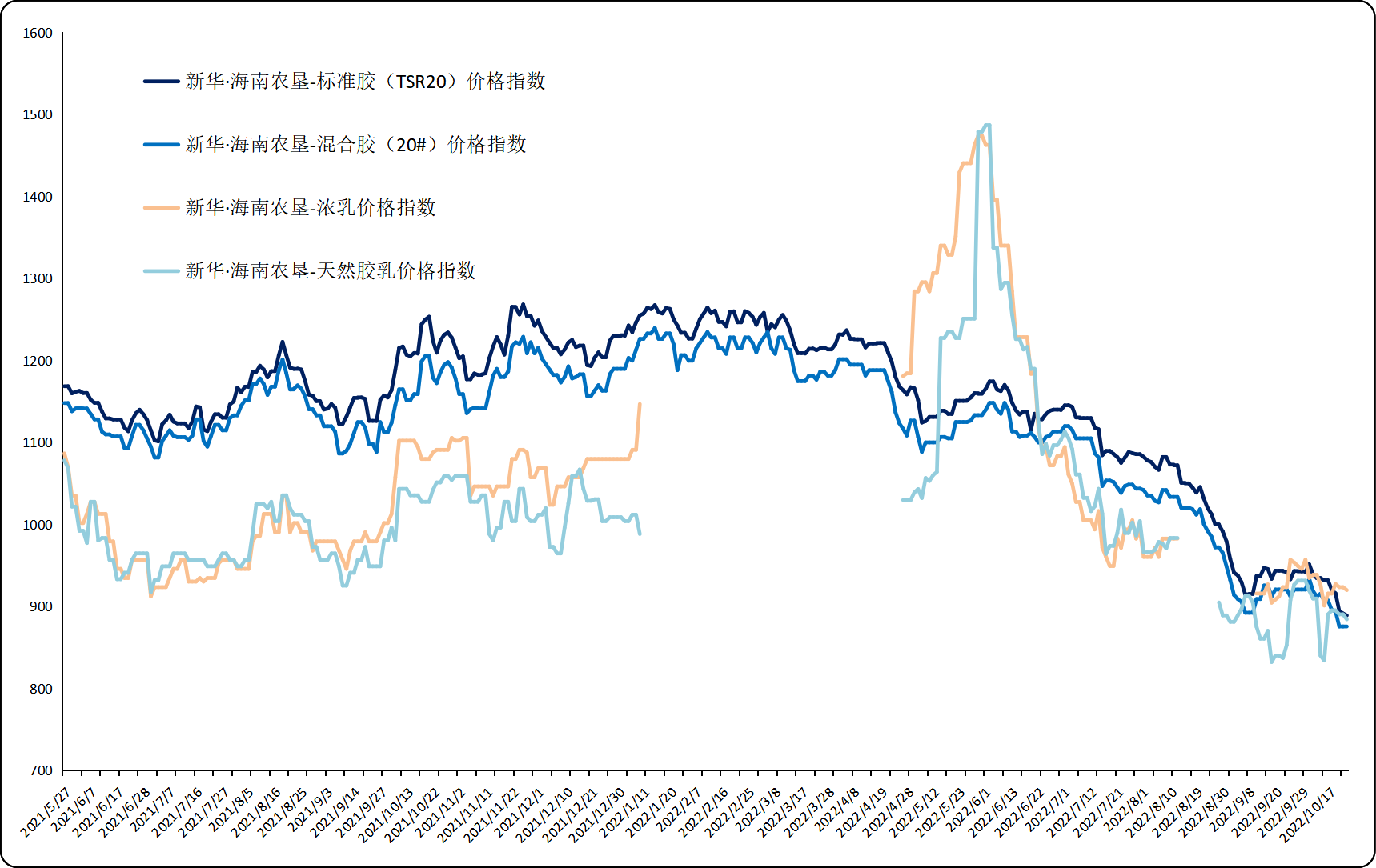 图1 新华·海南农垦-天然橡胶系列价格指数运行图