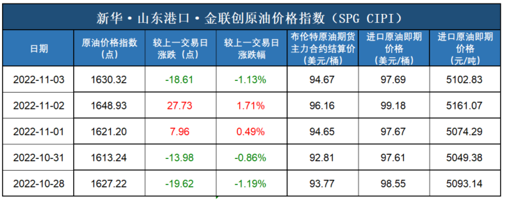 新华财经·指数|山东港口进口原油到岸价格指数日报(11月4日)