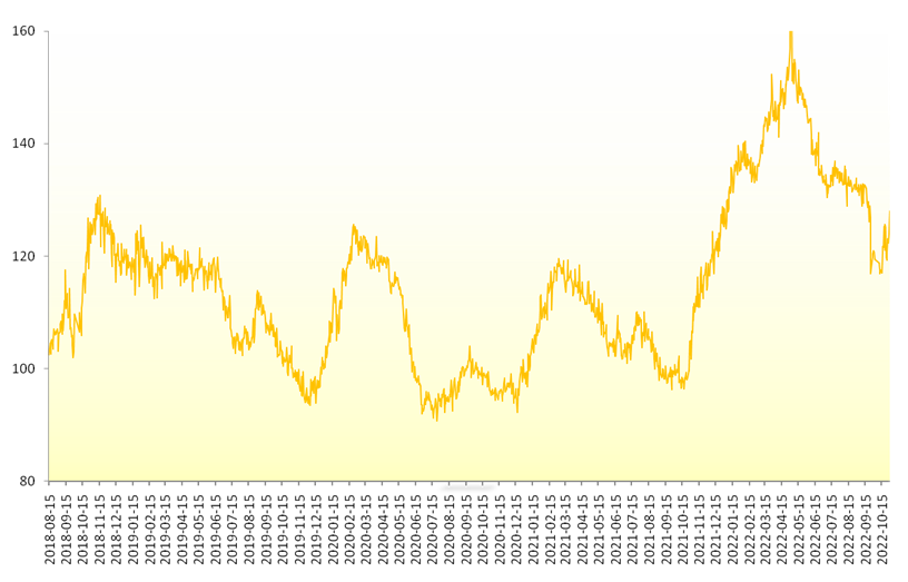 2022年11月6日,新华-香蕉销地批发价格指数报128.01点,较10月30日上涨2.89点,涨幅2.31%;较基期上涨28.01点,涨幅28.01%。