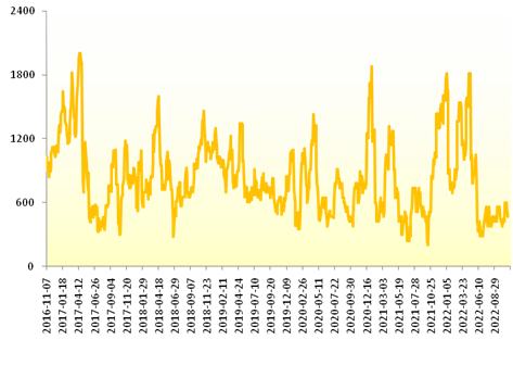 其中广西、海南、云南、福建、广东产区指数分别报122.36点、87.81点、60.47点、142.86点、131.25点。本期(2022.10.31-11.4),广东产区统货均价约为1.33元/斤,较前一期(2022.10.24-10.28)上涨0.13元/斤,涨幅11.11%;广西产区统货均价约为1.63元/斤,较前一期(2022.10.24-10.28)下跌0.04元/斤,跌幅2.40%。