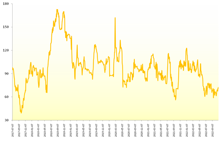新华财经北京11月8日电(李伯罧、薛志烜) 2022年11月4日,新华-中国香蕉产地价格指数报72.29点,较10月28日上涨4.60点,涨幅6.80%;较基期下跌27.71点,跌幅27.71%。