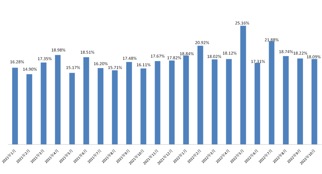 低钠盐销售方面,10月份超市渠道销售低钠盐占比超过15%的城市为上海、广州、太原、北京、重庆、青岛、沈阳、天津、石家庄、长春。