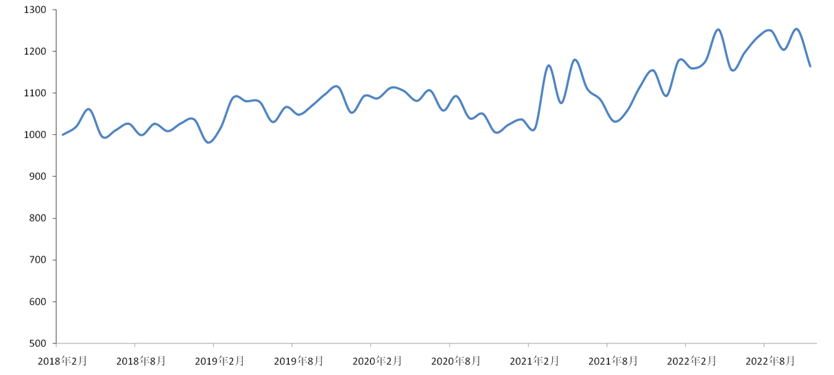 10月份新华·中盐食用盐(商超)价格指数报1163.57点,较上期(2022年9月)下跌89.93点,跌幅7.17%;较基期(2018年1月)上涨163.57点,涨幅16.36%。