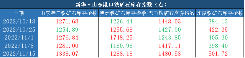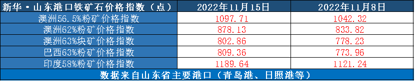 新华财经·指数|新华·山东港口铁矿石系列指数周报(2022.11.9-2022.11.15)