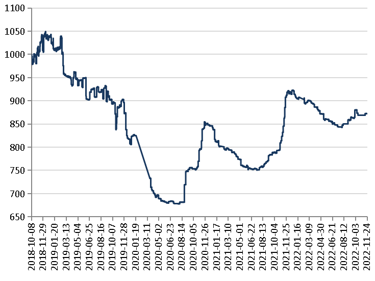 批发市场方面,截至11月24日,与上周同期相比,河北、河南红枣批发市场各等级骏枣、灰枣价格持平。调研显示,批发市场且因防疫管控,市场新枣到货量不多,鲜有交易。未来短期,批发市场红枣价格或将基本持平。