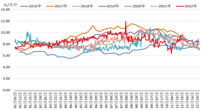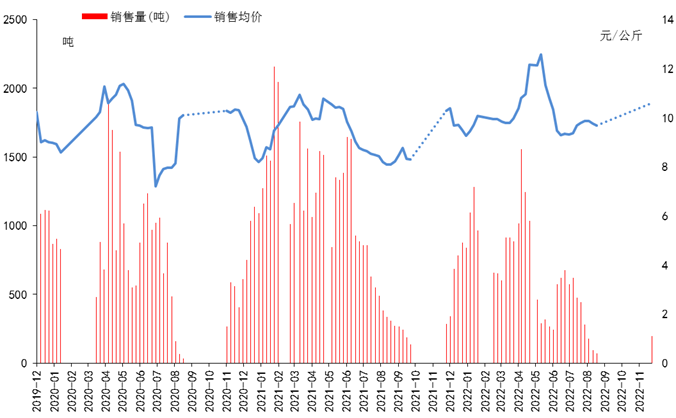 脐橙电商销售方面,目前秭归电商平台主销品种为九月红脐橙。九月红脐橙是秭归特有的早熟鲜橙品种,是目前我国所有栽培脐橙中成熟期最早的品种之一,果味浓郁,酸甜适中,Vc含量高达42mg/100g,果汁率高达55.3%。截至11月28日,秭归九月红电商销售均价报10.59元/公斤,同比上涨3.02%。