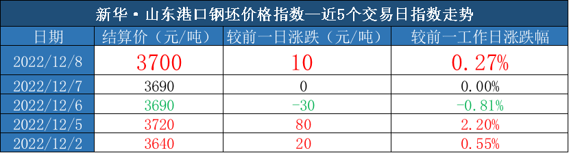 新华财经·指数|12月8日山东港口大商中心钢坯、热轧C料价格皆微幅上涨