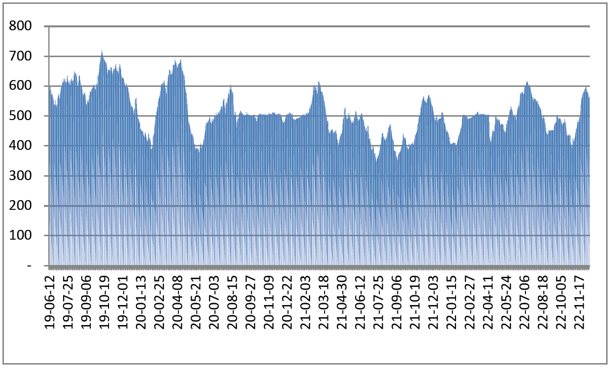 12日,中国天然气信息终端(E-Gas系统)发布的实时LNG进口到船数据显示,12月5日-12月11日当周,中国通过沿海LNG接收站进口LNG共计18船,进口量约为141万吨,比前值多10万吨。