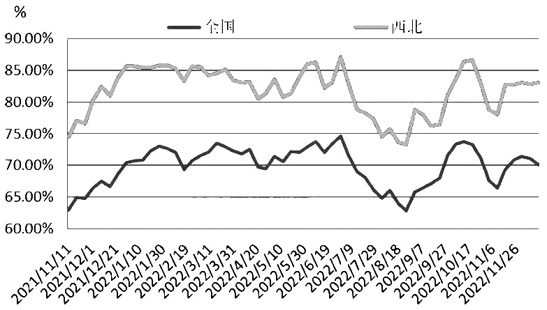 从供应端来看,国内开工方面,上周国内甲醇开工率从71.06%下滑至70.13%。不过,考虑到今年西南地区限气力度不及往年,仅卡贝乐有停车计划(计划2023年1月上旬重启),加之煤制甲醇利润从-720元/吨小幅修复至-685元/吨,并且甲醇厂家一般不会选择在冬天检修。由此预计,国内甲醇开工率继续下滑空间有限,整体仍将位于高位水平。