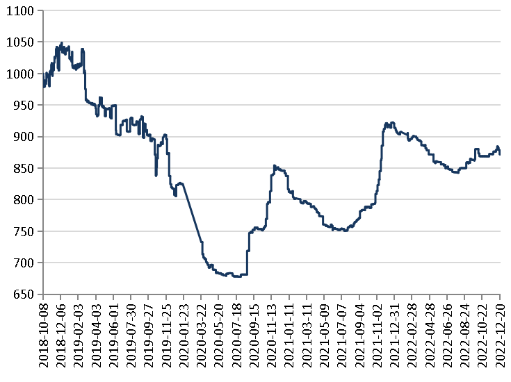 数据显示,截至12月22日,新华(阿拉尔)红枣价格指数报872.91点,周环比下跌1.15%,分地区看,新疆产区红枣价格指数周环比下跌1.91%,批发市场红枣价格指数周环比下跌0.76%。