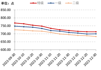 从质量等级维度来看,12月下旬特级花椒价格保持稳定,一级花椒价格微幅反弹,二级花椒价格继续回调,与特级、一级花椒价格差距进一步拉大。截至12月30日,特级花椒价格指数报712.42点,较上期下跌0.07%,较基期下跌28.76%;一级花椒价格指数报699.80点,较上期上涨0.14%,较基期下跌30.02%;二级花椒价格指数报682.86点,较上期下跌0.72%,较基期下跌31.71%。