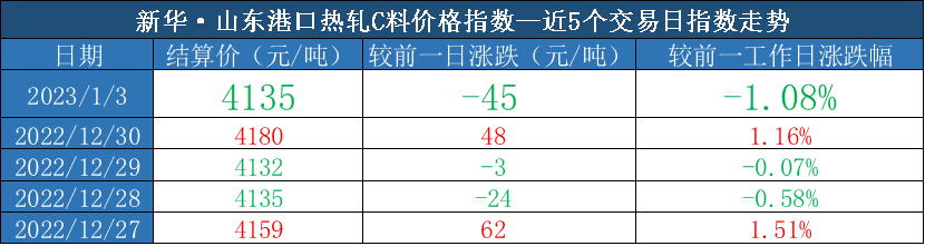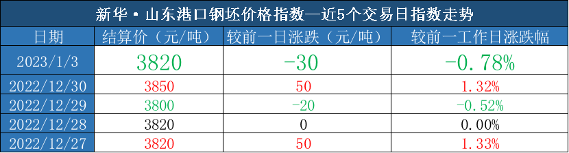 新华财经·指数|1月3日山东港口大商中心钢坯、热轧C料价格下行