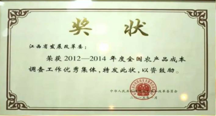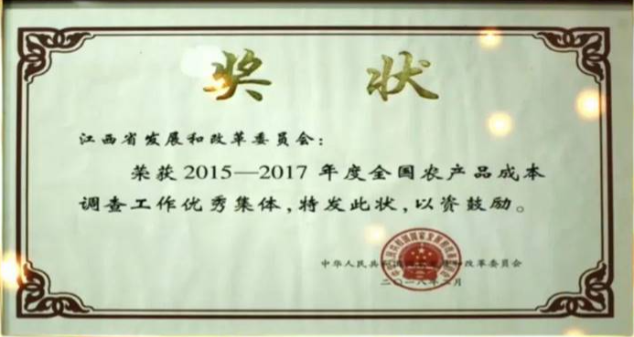 在各调查县共同努力下,近年来,江西省连续四次获得全国农产品成本调查先进集体。在今后工作中,以农产品成本调查工作70周年为契机,弘扬价格工作正能量,积极展示农产品成本调查服务粮食安全、价格改革、乡村振兴、农业农村现代化取得的成果以及先进事迹,提升农产品成本调查影响力和凝聚力,激励广大农产品成本调查工作者奋进新征程、建功新时代,更好服务乡村振兴战略和经济社会高质量发展。