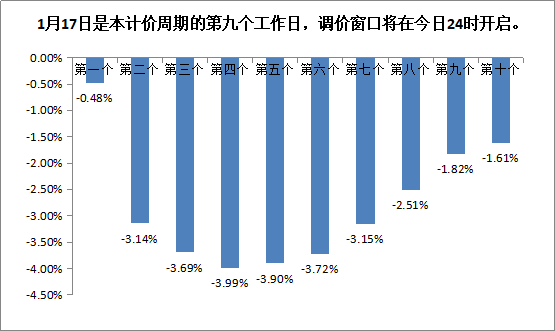 煤炭:产地方面,坑口煤交易冷清,煤价基本平稳。港口方面,节前最后一周,需求继续走弱,叠加部分贸易商对节后市场不乐观,降价出货意愿增强。1月17日,秦皇岛港港口煤炭库存为585万吨,较前一日下降1万吨。
