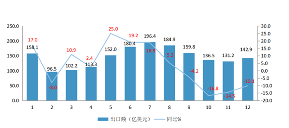 新华财经上海2月9日电 2月9日,中国纺织品进出口商会发布了《2022年1-12月我国服装出口分析》。中国纺织品进出口商会分析称,三年来,我国服装出口逆转了自2014年达到1862.8亿美元顶峰后逐年下滑的趋势,2022年出口规模比2019年累计增长近20%。其中,2022年各月出口情况呈现前高后低的趋势,除2022年2月份出口受春节影响出现下降,2022年1-8月各月出口均保持增长;2022年9-12月各月出口均呈下降趋势。