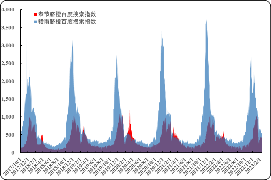 图3.奉节脐橙百度搜索指数与赣南脐橙百度搜索指数