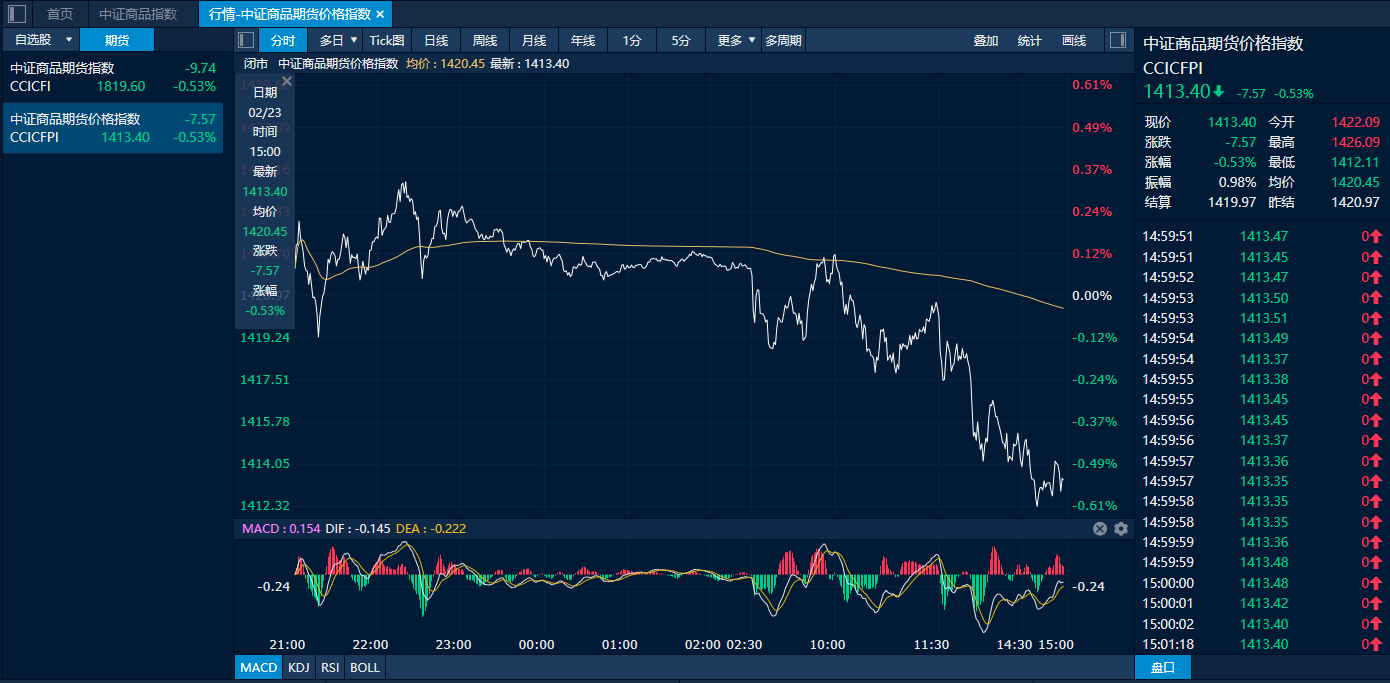 中证商品期货价格指数2月23日日内走势图