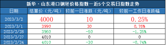 新华指数|3月2日山东港口大商中心钢坯、热轧C料价格仍微幅上涨