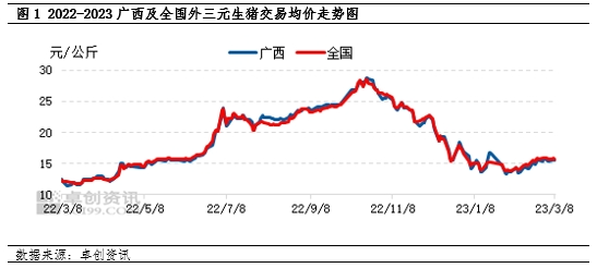 2023年初广西外三元生猪交易均价冲至全国第一后,2月猪价几度跌至全国低洼区,而生猪供应阶段性收紧,需求较同期提升显著,助推一季度猪价触底反弹,预计广西3月份行情或高于2月份平均水平,但上涨幅度有限。