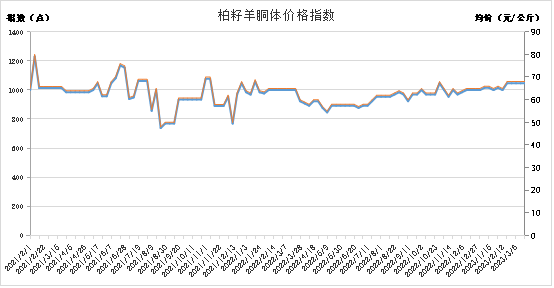 截至2023年3月12日,柏籽羊胴体价格指数报1046.26点,较上期持平。