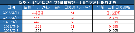 新华指数|3月14日山东港口大商中心钢坯、热轧C料价格均保持上行