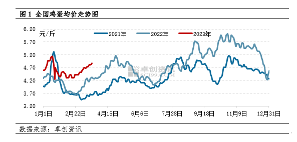 另外,由于春节过后易出现库存积压,今年各环节均积极控制库存,春节过后市场库存天数低于往年同期1-4天。节前库存量偏少,也使得进入2月后鸡蛋供应量有限。鸡蛋产量及前期市场库存均不多,2-3月鸡蛋供应量整体有限,成为助推蛋价走高的主要原因。