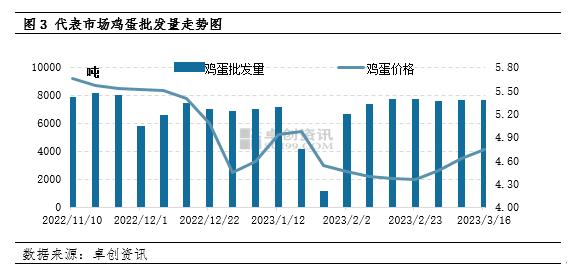 供应方面,由于养殖单位淘汰老鸡积极性较低,且新开产蛋鸡小幅增多,3-4月全国产蛋鸡存栏量有增多趋势,但幅度不大,鸡蛋产量短期难以明显提升。