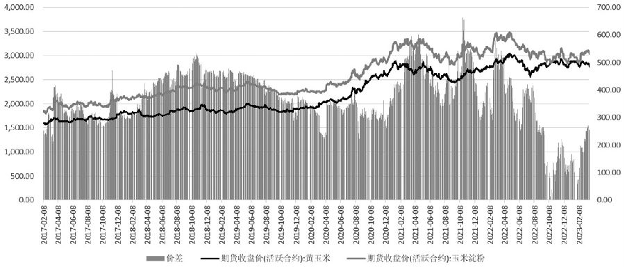 图为玉米淀粉和玉米价差表现
