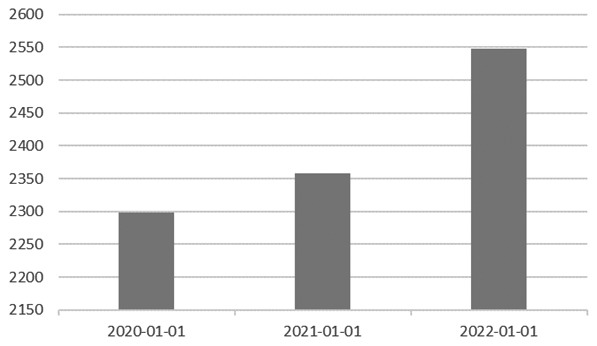 图为中国玉米淀粉产能(单位:万吨)