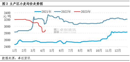 3月小麦市场余粮相对宽裕,加之部分使用第三方资金的粮商有还款压力,认价出货,价格重心持续下移。据卓创资讯数据监测,3月小麦主产区均价为3049元/吨,环比下降5.02%。小麦价格下跌,面粉成本支撑作用减弱。