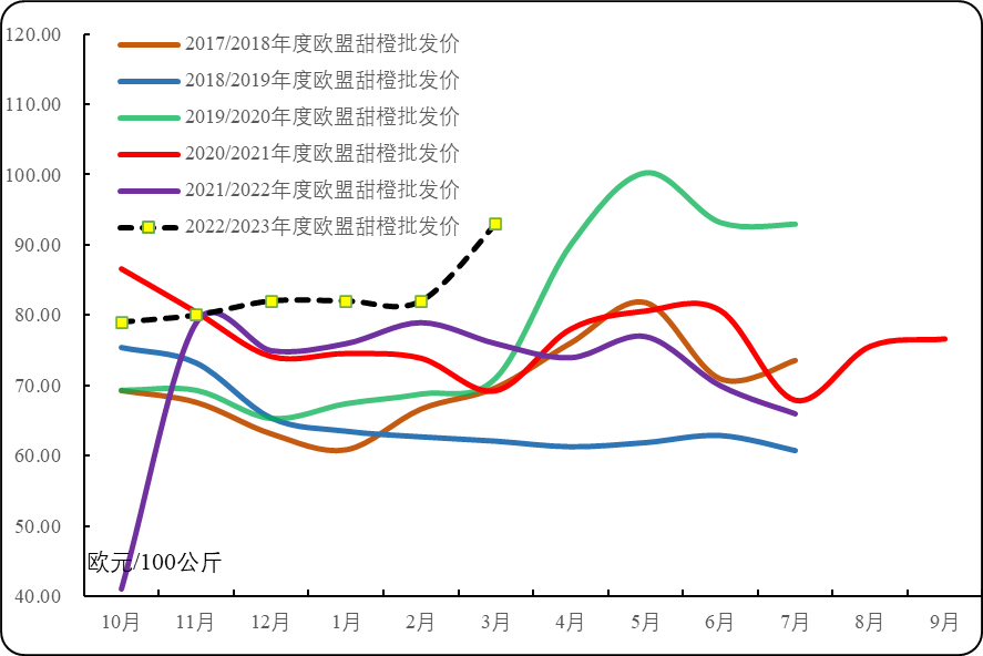 欧洲甜橙市场:本土品牌甜橙供给急剧走低,欧盟甜橙市场批发价格拉升