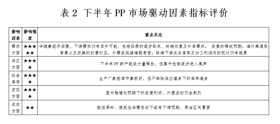 影响PP未来走势的因素很多,根据市场反馈,卓创资讯将不同影响指标进行分类和赋值: