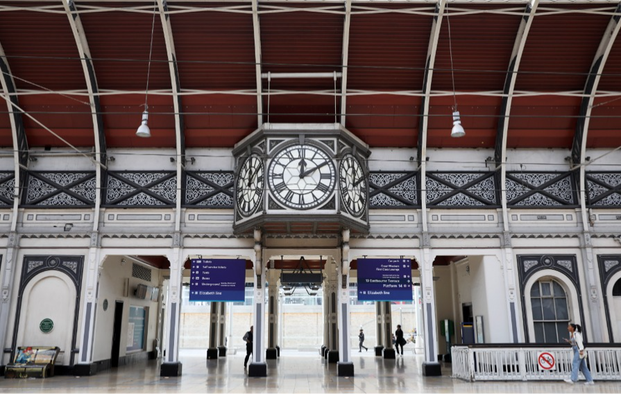 (6月2日,旅客在空旷英国伦敦帕丁顿火车站内行走。因薪酬和工作条件等方面的诉求长期未得到解决,英国铁路工人多次举行罢工。 新华社记者李颖摄)