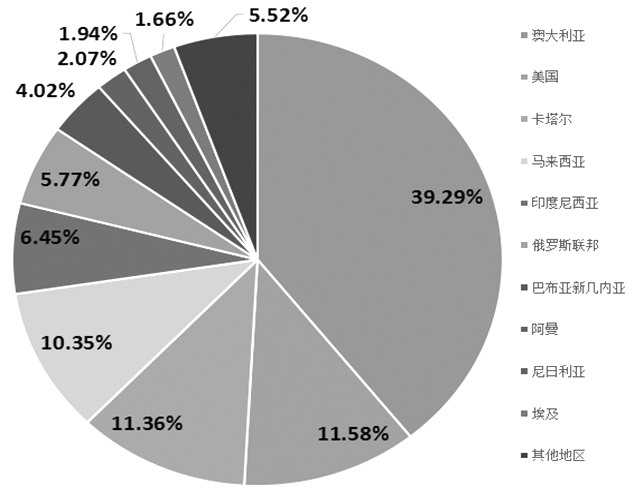 图为我国LNG进口来源地进口量分布