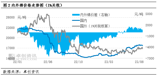 一方面,内外棉价差维持高位,进口棉存在价格优势。