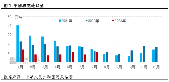 内外棉价差维持在高位,进口棉优势明显,进口窗口已经打开,7月我国棉花进口量环比增多,同比降幅明显收窄。下游市场即将迎来需求旺季,而供应仍处于淡季,预计8-9月中国棉花进口量将继续增多。