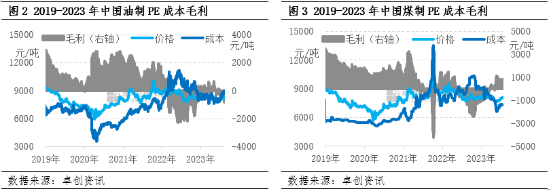 近五年来,随着国内PE石化装置密集投产,PE产能不断扩大,自给率不断提升。而下游需求受制于国家政策和行业升级变化的影响,增速逐渐放缓。供需博弈之下,PE市场价格涨跌两难,PE不同原料路径间的成本价差逐渐缩窄,竞争压力逐渐加剧,盈利水平逐渐下降,部分时间处于亏损状态。