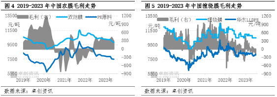 对于这两个传统下游行业,根据近五年的数据,纵向价值链中可以看到,传统下游行业盈利水平有所收窄,多存在低价竞争的现象,部分时间存在亏损的现象。目前下游制品加工企业盈利能力多集中在一些较为小众的专用料领域,通用领域下游行业盈利能力相对较差。
