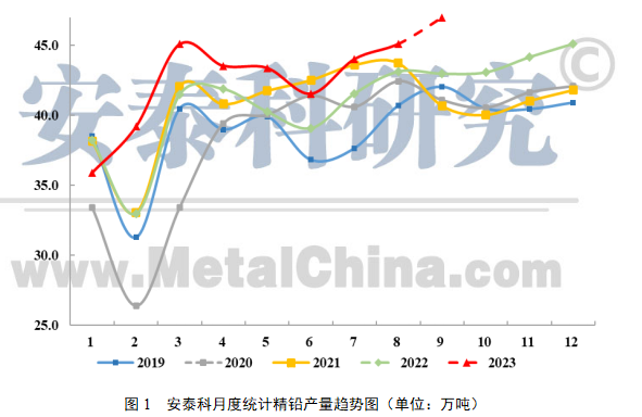 安泰科对国内主要铅冶炼企业(涉及原生铅产能372万吨、再生铅产能578万吨)产量统计结果显示,2023年1-8月,样本企业精铅产量337.8万吨,同比增长6.0%。