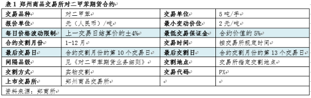 对二甲苯期货和期权将于9月15日在郑州商品交易所正式挂牌上市。期货的上市对于产品及行业角度而言,能够为PX现货市场提供更透明的价格发现工具,提升行业的价格透明度,同时也将影响和改变对二甲苯的现货价格的驱动。