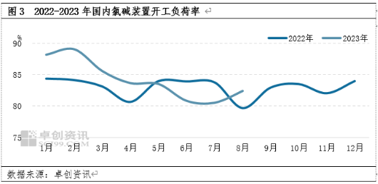 烧碱按照形态分为液碱和片碱,液碱产能占比80%左右。2020-2023年华东地区液碱、纯碱价格相关系数在0.76。2020-2023年华东地区轻碱、液碱价格走势基本一致,轻碱价格波动更大。在宏观强预期向弱现实转变的过程中,受下游需求疲软及市场预期悲观的影响,上半年液碱、轻碱价格均出现一定下滑。从7月份开始两碱价格出现一定反弹,主要受到供应减量、成本支撑及需求边际好转的影响。但是纯碱价格涨幅明显高于液碱,主要是两者供需基本面不同。纯碱虽然远期悲观,但7-8月的集中检修导致货源供应紧张,价格涨幅扩大。在供应减量及需求边际好转的情况下,液碱市场成交重心上移。