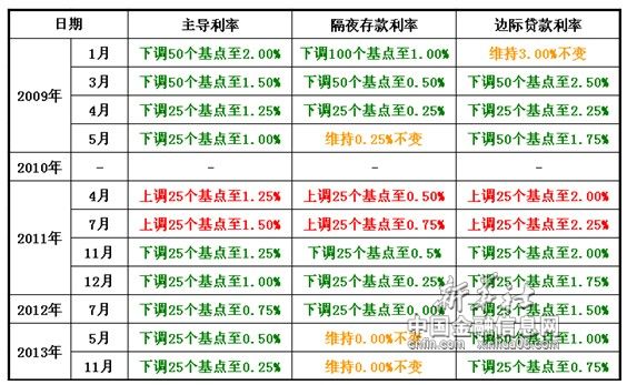 图表:2009年至今欧洲央行利率调整决定一览