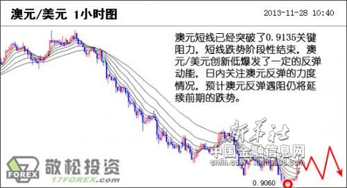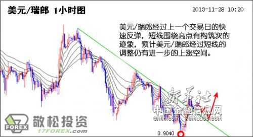 美元/瑞郎日线图对均线系统形成了反复的穿越,客观方向保持了横盘震荡节奏。虽然美元/瑞郎创新高遇阻出现了一定程度的回调,但是美元/瑞郎近期整体的调整节奏仍然是对前期上涨的阶段性调整,预计美元/瑞郎经过近期的调整仍有进一步上涨空间。从小时图走势来看,美元/瑞郎围绕均线系统反复穿越,客观方向横盘,美元/瑞郎突破了11月21日以来的下行压力线的阻力作用,短线跌势阶段性结束。美元/瑞郎经过上一个交易日的快速反弹,短线围绕高点有构筑次的迹象,预计美元/瑞郎经过短线的调整仍有进一步的上涨空间。短线支撑0.9070,0.9035;阻力0.9090,0.9130。