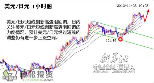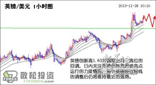 美元/日元日线图延续了中期的区间向上节奏,美元/日元当前向上动能占优势,预计美元/日元中期上涨趋势延续。从小时图走势来看,美元/日元在均线系统的依托作用下保持了客观涨势,美元/日元突破了11月25日以来的次要节奏区间上沿延续了前期的涨势。美元/日元短线创新高遇阻回调,日内关注美元/日元短线创新高遇阻回调的力度情况,预计美元/日元经过短线的调整仍有进一步上涨空间。短线支撑101.70,101.10;阻力102.30,102.50。