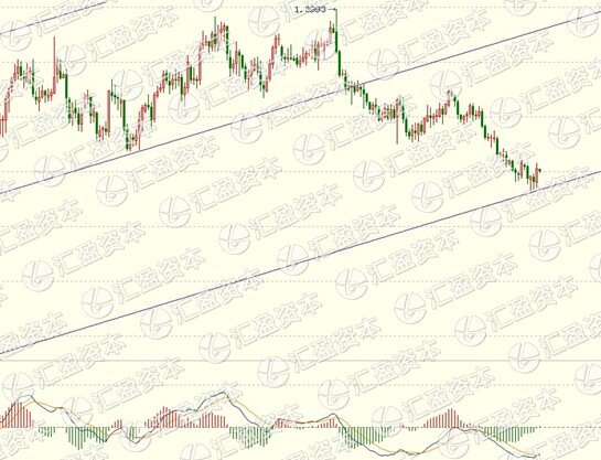 从日线图中可以看出,欧元在触及趋势线的支撑1.3331后迅速得到反弹,也足以证明通道倍增原理的有效性,也确认了欧元短期的下跌趋势,那么目前欧元需要短暂的上调,上方压力位1.3470.