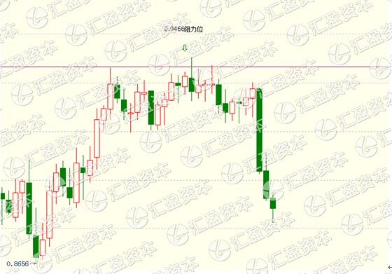 澳元的走势可谓是“飞流直下三千尺”,如果说我们从周线图来看,自行情从0.9466遇阻下跌以来,价格的下探幅度很大,几乎没有回调迹象,但目前来看,澳元的空头趋势还将延续,短期注意小幅回调风险。