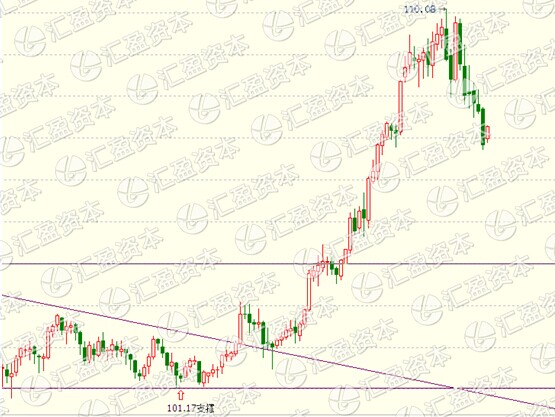 对于日元来说,可谓是好景不长,进行了连续8周的强势上涨之后,目前价格出现了大幅的回落,我们也可以视为行情的获利回吐,但总体的走势方向仍然是多头趋势,所以在操作上,建议投资者等待回调过后考虑多单进场。