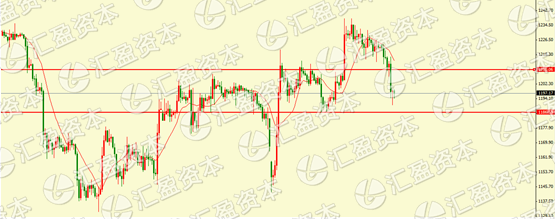 黄金四小时图,从图形上来看,昨日金价直接穿了两个区间1215-1240和1198-1257,来到目前1210-1186这一区间,投资者在这一区间可以选择低吸高抛的交易策略。激进的投资者可以选在在1203附近进空单,止损放在1208,下方看1190短线支撑,不建议任何追单的策略。