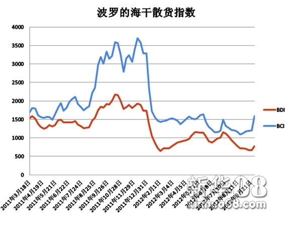 波罗的海航运交易所数据显示,由于运力扩张过快、需求增长放缓,航运业供应严重过剩,今年整体运费下跌89%至2644美元,其中海岬型船运费8月下跌43%至3779美元,使三季度平均运费跌至1999年以来的低位。但受我国万亿基建项目批复的消息影响,近两周铁矿石价格出现暴涨,因此有分析师预测,以运输铁矿石为主的海岬型船今年四季度日均收入将急增至1.25万美元,运费上升将使航运公司亏损面大幅缩小,并可能出现收支基本持平的局面。